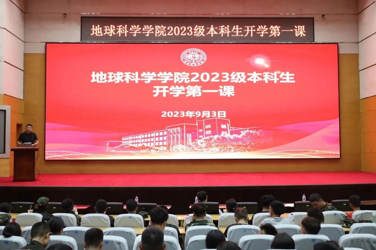 于2023年9月3日晚六点在东荣会议中心举办了新生“开学第一课”活动。本次报告由院长单玄龙教授主讲,报告主题为“奥秘地球,精彩人生”。党委副书记兼副院长李阳、23级辅导员杨凯凯和全体本科新生参加活动。