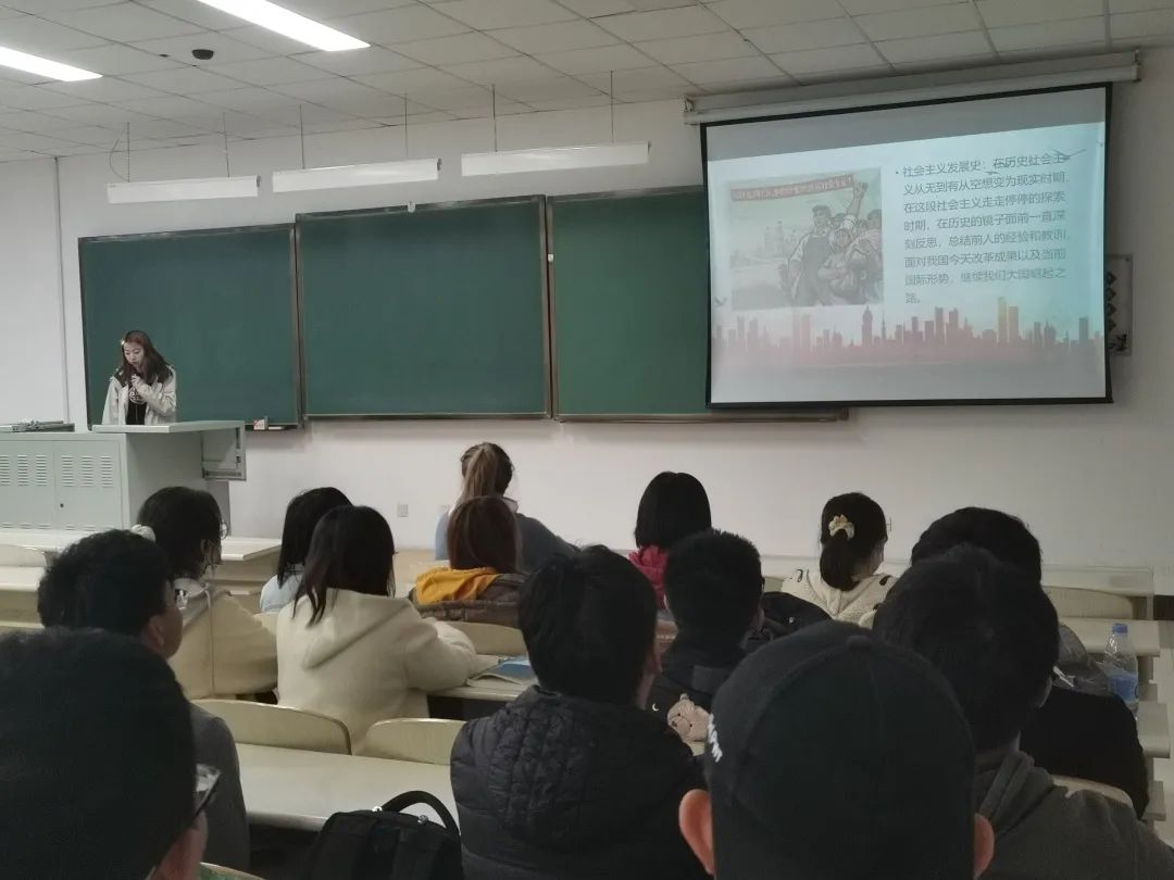 首先,李妍同学向全体成员介绍本次活动主题和活动目的,并带领同学们学习由习近平总书记提出的“四史”,即:党史、新中国史、改革开放史和社会主义发展史。通过视频和ppt的介绍,让同学们深刻的学习四史知识,体悟革命情怀。