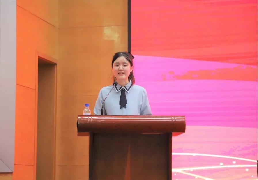 然后,优秀本科生代表张宠雪向2021级新生们分享了大学里的三个关键词:选择、坚持和用心感受。她以自己的求学之路为例指出坚持的重要性,并建议同学们进入大学应有清晰定位和明确目标,并为之奋斗。此外她还分享了在学校里丰富多彩的生活,野外实习中的意外之喜,以及在这期间领悟到的地学前辈的伟大精神。青春肆意飞扬,热爱经久不息。发言最后,张宠雪同学祝每一位21级新生在求学之路上找到方向实现理想。