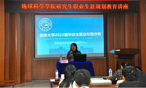 毕业生就业情况介绍及经验分享会”。以自己在就业工作中的所思所感为切入,运用案例分析的方法帮助同学们树立正确的就业观,做好从研一开始的就业规划。