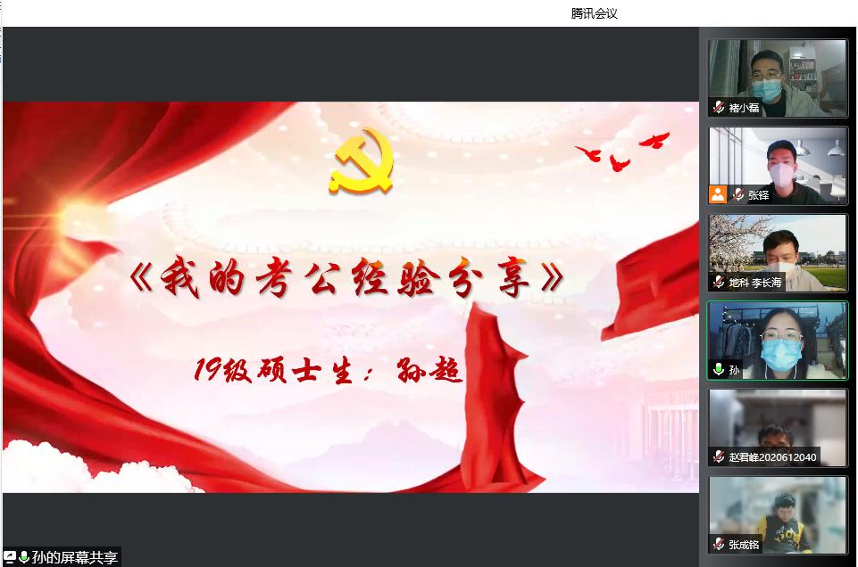 于4月1日开展研究生“云端分享,就业无忧”主题线上就业分享会。本期活动学院立足研究生需求,发挥朋辈力量,邀请2019级研究生代表从国企就业、公务员考取及跨专业就业三个维度面向学院全体研究生进行就业经验交流与分享。活动由学院兼职就业辅导员褚小磊主持,学院党委副书记马旭参加本次活动。