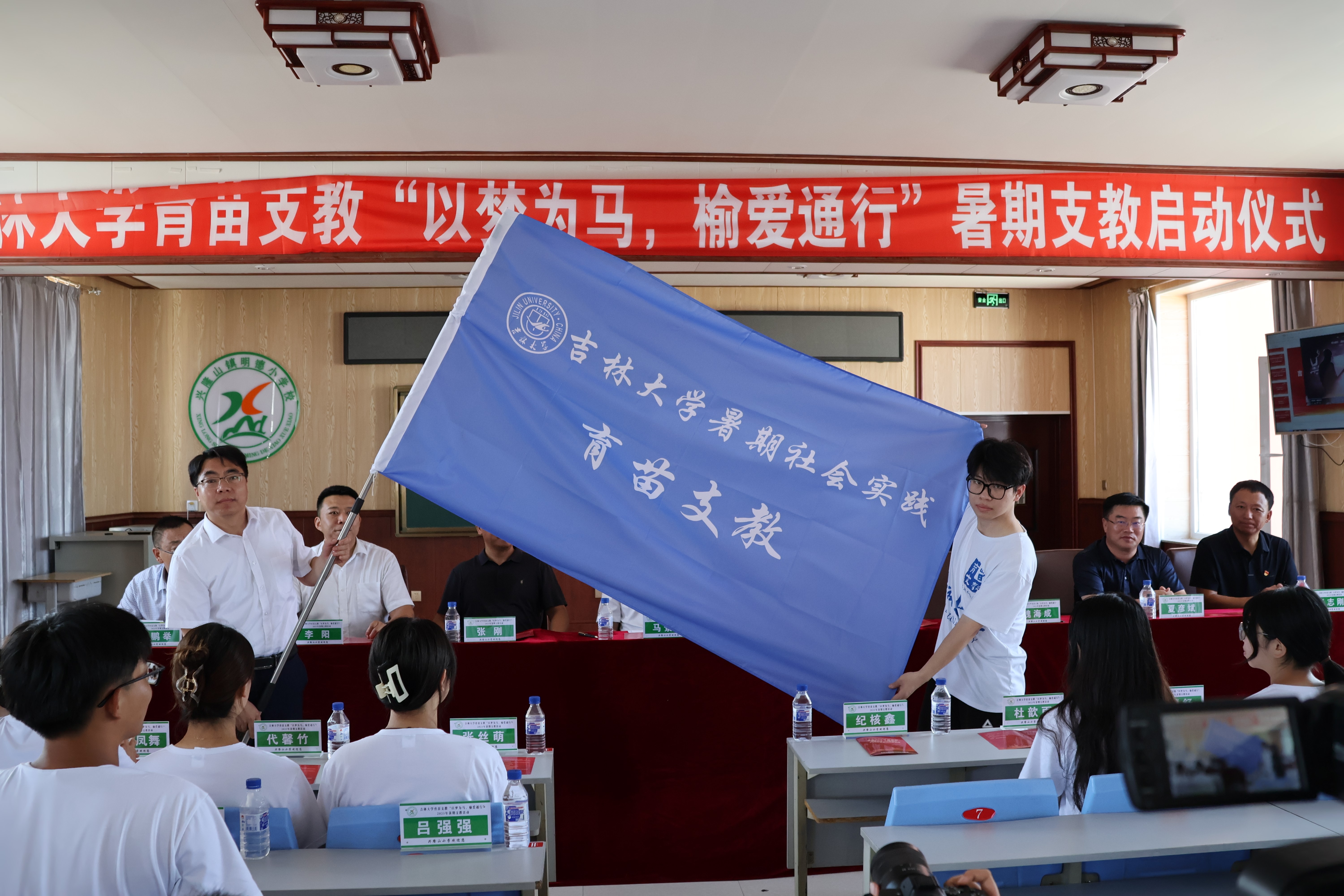 育苗支教社团暑期社会实践”授旗仪式。最后,通榆县兴隆山镇明德小学学生代表向 日本av中文字幕