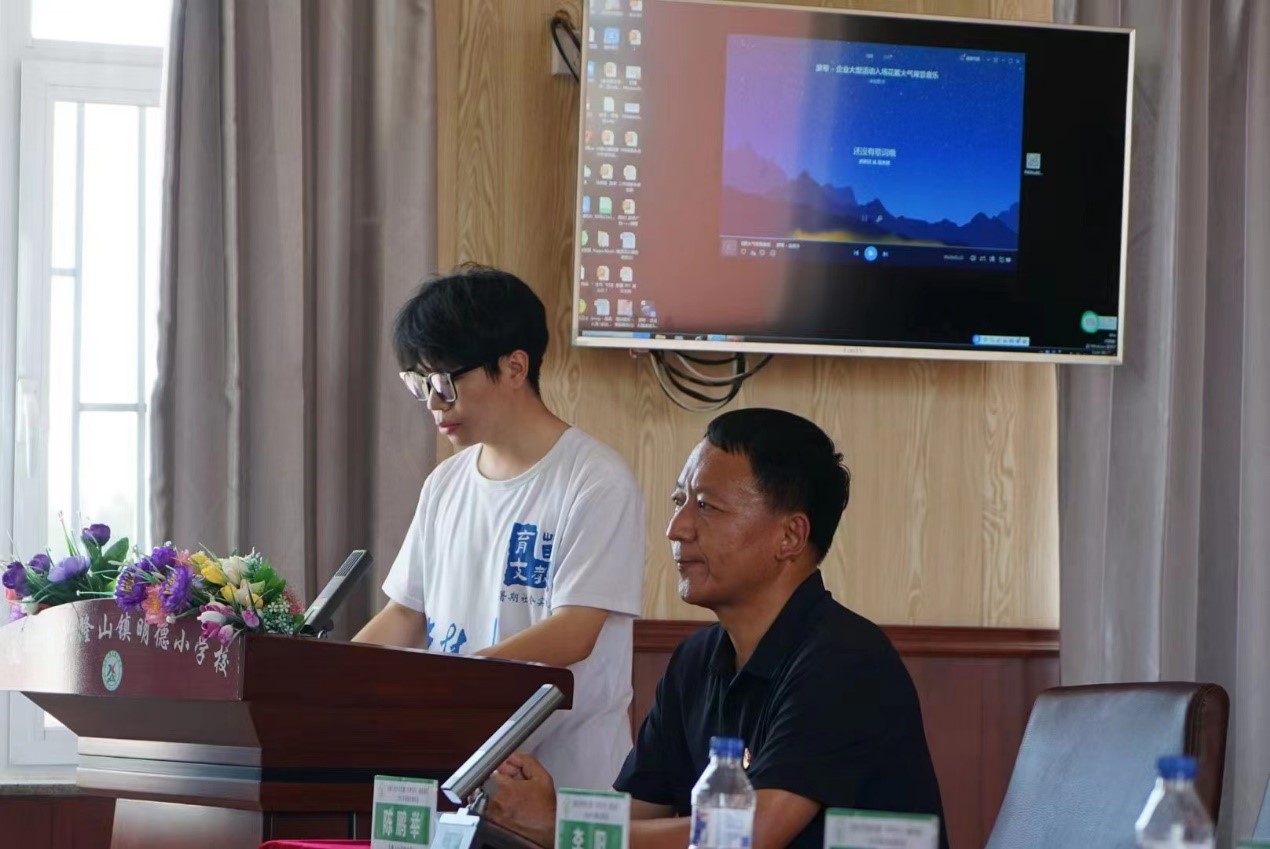 启动仪式结束后,支教队队长吕强强为与会的学生代表与家长代表介绍了支教队准备的特色课程。他代表全体支教成员宣誓,支教队员将以身作则,为学生们树立良好的榜样,努力激发学生的创造力,以饱满的热情、耐心和责任心,尽心尽力地投入到教学工作中,与明德小学的学生们一起度过这段难忘的时光。