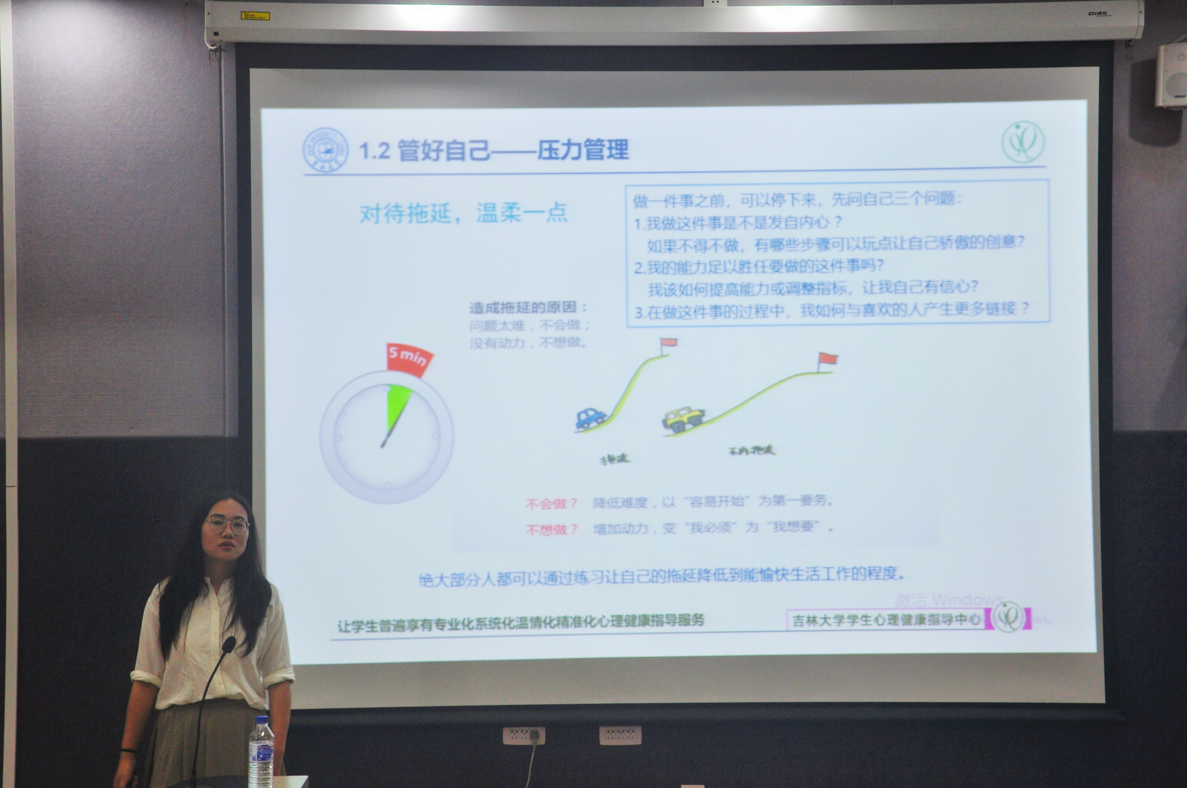 随后,张老师围绕心理健康知识的宣传普及、研究生心理健康的影响因素、增进心理健康的策略、学校的心理健康指导服务等内容,从“管理好自己”、“利用好资源”两个方面展开,强调了目标管理、压力管理和时间管理的重要性和意义,给出了如何利用知识资源、人际资源和专业资源的宝贵建议。最后,张老师呼吁同学们在遇到难以解决的心理问题时,应主动寻求帮助,借助专业的力量, 日本av中文字幕