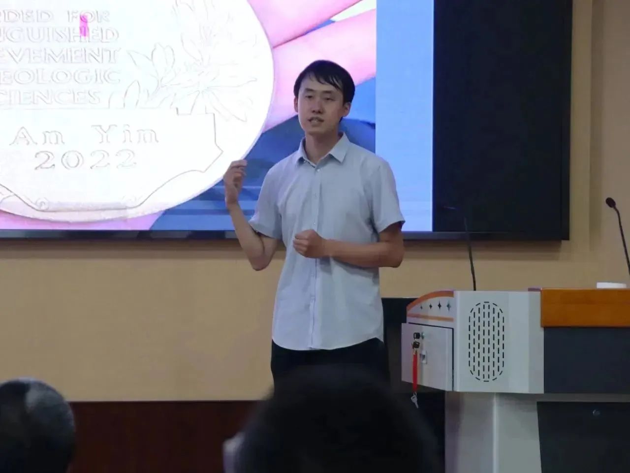报告会上,于祥江教授结合自身在加州大学洛杉矶分校的学习与工作经历,用通俗易懂的语言,从课程基本要求、野外实习条件、区域地质背景等多角度全方面地介绍了美国大学本科和研究生阶段野外实习的基本情况,介绍过程中穿插对导师尹安教授鞠躬尽瘁、不求回报的高尚品格与杰出地质能力的缅怀之情,为地学学子们树立了一个不怕苦不怕累的先进模范形象。于祥江教授深刻指出:全球形势瞬息万变,国家之间的博弈实际为国内外青年之间的竞争,国外地学学生所学课程的严格要求、野外实习的艰苦条件、自身学习的开拓进取,都是对我们同学现有学习态度的严峻考验。