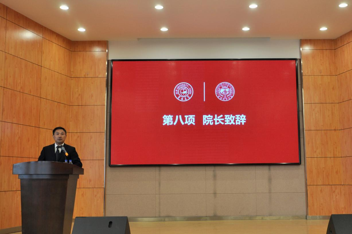 最后,单玄龙院长在致辞中代表学院教职员工向研究生新生表示欢迎,向同学们详细介绍了学院近期的主要进展。并希望同学们扬帆远航再出发、挑战自我勇创新、心系家国敢担当、热爱生活种梦想,勇担时代大任,在天地之间求真知,在知行之中做答卷。