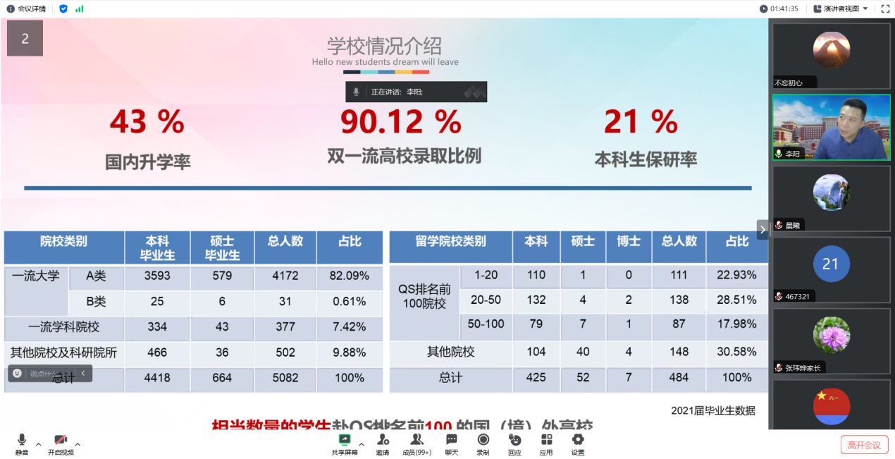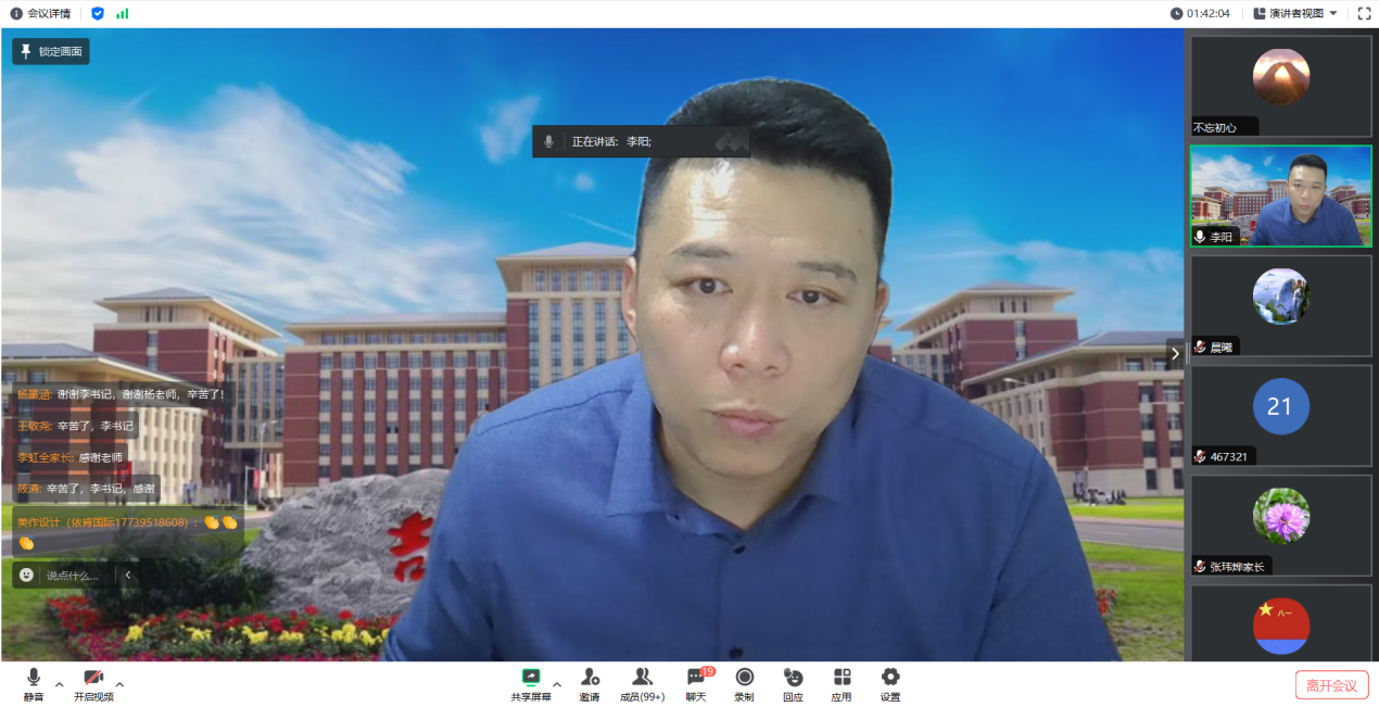 召开了2023级本科新生线上家长会。学院党委副书记兼副院长李阳以及学生工作办公室部分教师,会议由学生工作办公室主任、2023级辅导员杨凯凯主持。