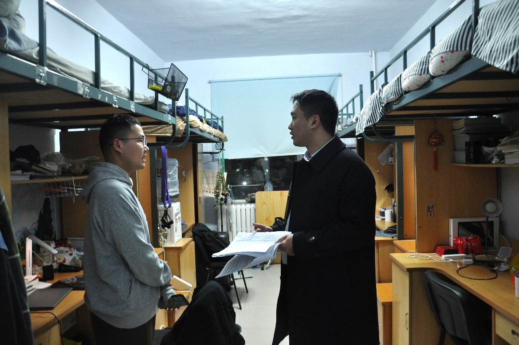 为进一步加强研究生公寓安全管理,排除公寓安全隐患,培养研究生的道德品质、生活习惯和安全意识,创建文明、安全、整洁、舒适的学习生活环境,3月28日晚,学院研究生辅导员姜鹏带领研究生公寓安全及卫生检查工作小组对学院所有研究生寝室进行了安全及卫生检查。