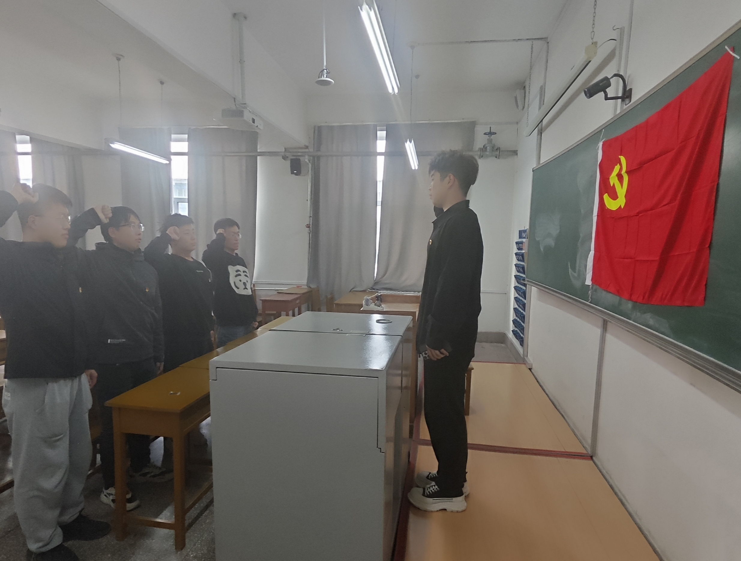 为加强研究生党员教育管理工作,通过入党宣誓增强新党员身份认同、思想认同、情感认同和政治认同,2024年4月1日,硕士学生第二党支部在鸽子楼举行了新发展党员入党宣誓仪式。学院党委副书记马旭、研究生辅导员姜鹏出席仪式。