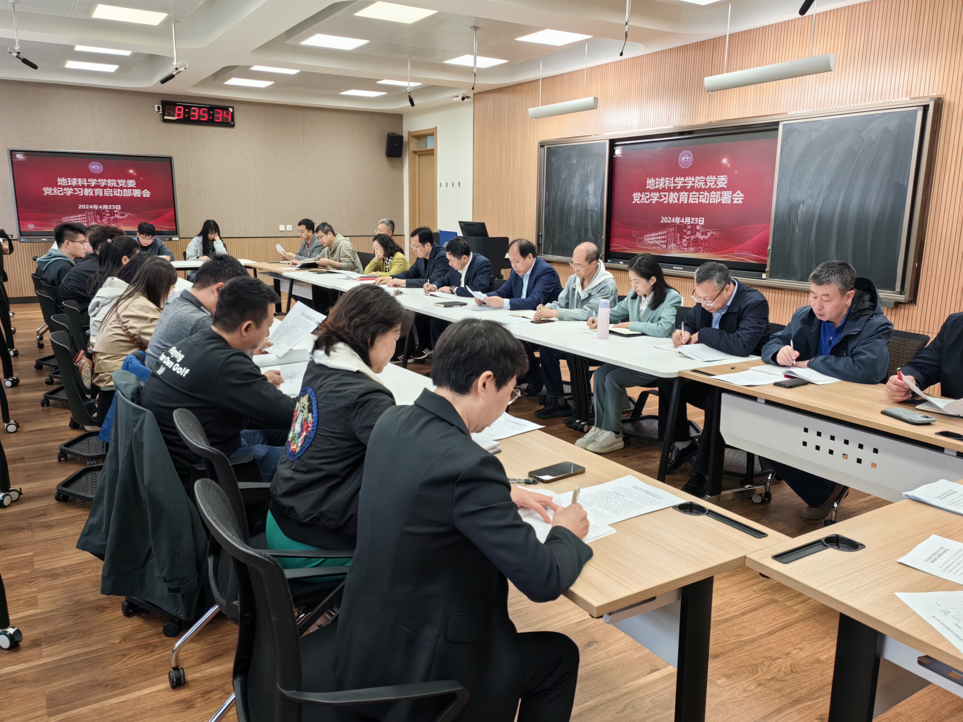 党委在鸽子楼408教室召开党纪学习教育启动部署会。学院领导班子成员、党委委员、纪委委员、党支部书记、党员科室主任参加会议,学校党建联络员张洪飞老师到会指导。会议由党委书记杨洲主持。