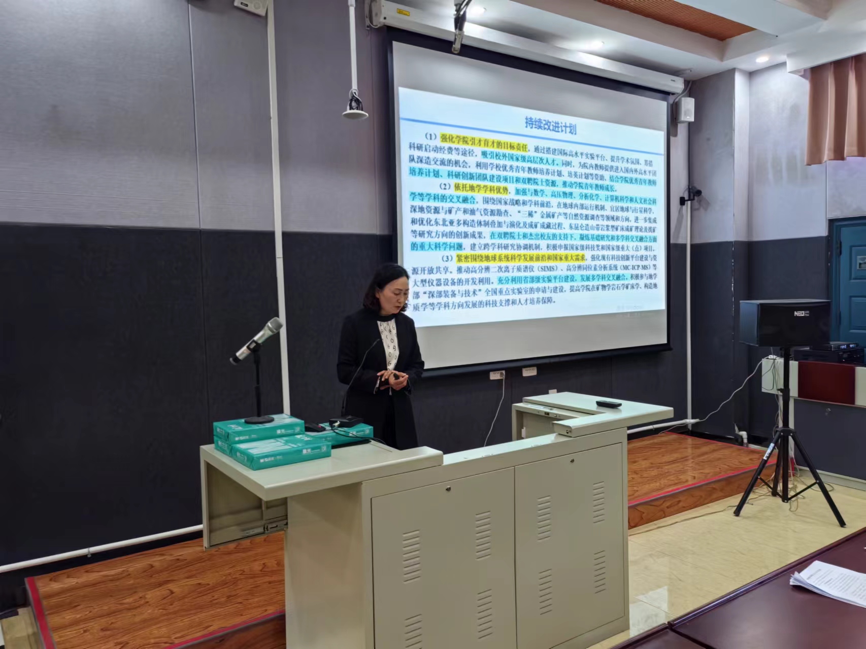 会上,院长单玄龙就学院2024年工作要点进行了解读,他从本科教学、研究生培养、师资队伍建设、科研和学科建设等四个方面将学院工作概括为11项重点任务。他希望广大教职工能够了解学院工作并深度参与推进重点工作落实,携手努力,推进学院工作再上新台阶。副院长许中杰就本科教育教学审核评估自评情况进行了汇报,副院长柳蓉就地质学学位点2020-2025年学位授权点周期性合格评估情况进行了汇报。