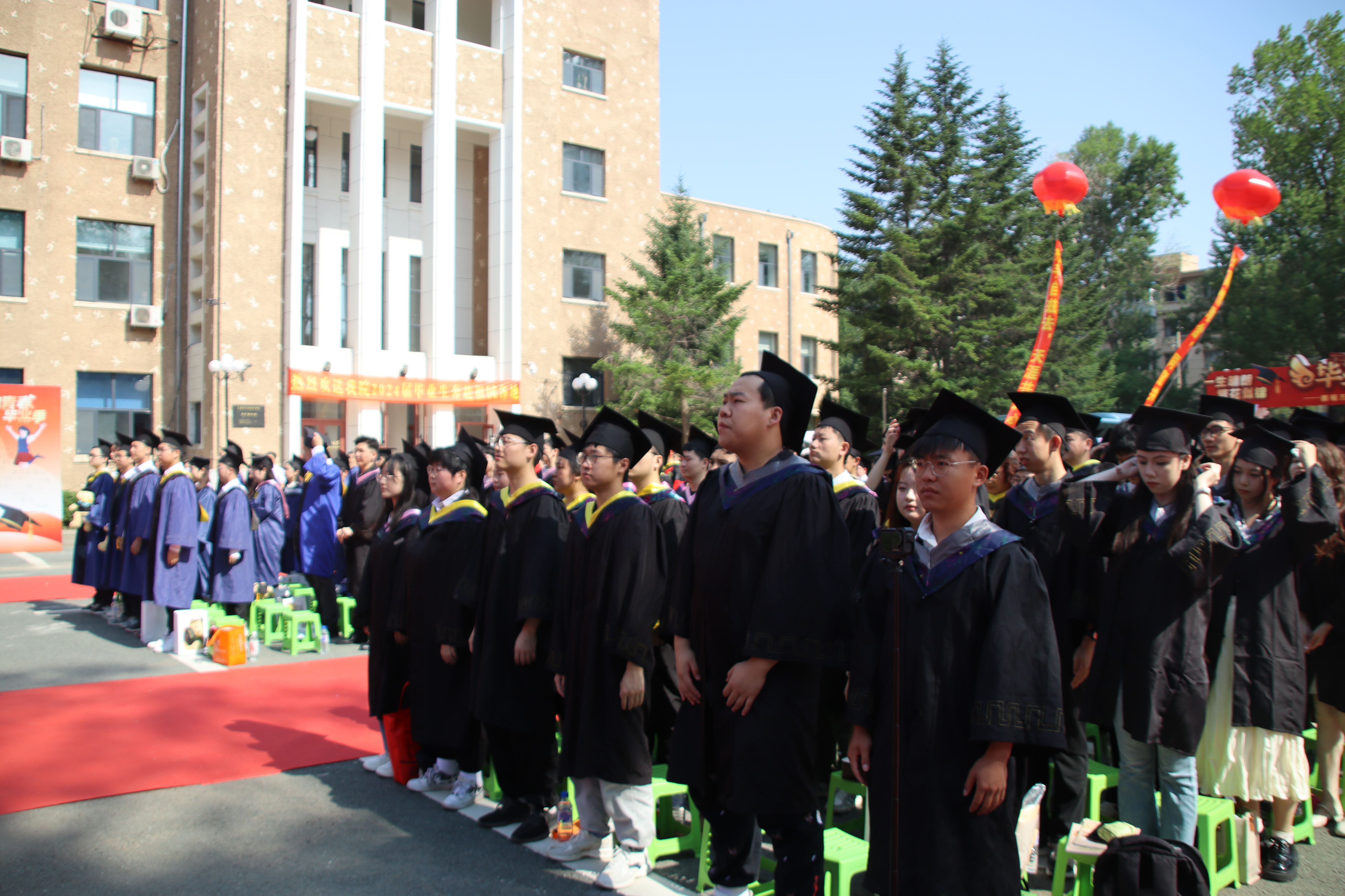 2024年毕业典礼暨学位授予仪式在鸽子楼前隆重举行,出席本次典礼的有学院领导班子成员,学院学位委员会、学术委员会、教学委员会成员,各系主任,以及各职能办公室的老师和全体毕业生。典礼由党委副书记李阳主持。