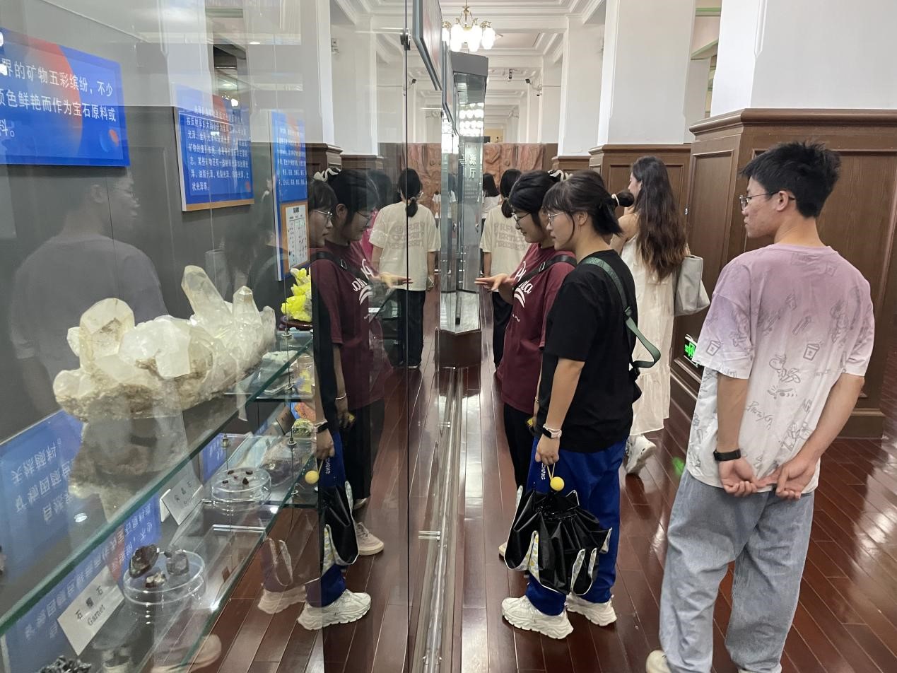 地质博物馆始建于1952年,陈列面积2000平方米,以其丰富的藏品、精美的展品及独特的学术氛围享誉国内外。新生们在博物馆内参观了矿物、岩石、宝玉石、化石及奇石等众多藏品,其中包含嘉荫卡龙骨架化石、娇小长春龙骨架化石、禄丰龙骨架模型、恐龙蛋化石以及恐龙脚印化石等珍贵展品,这些展品不仅展示了地球科学领域的丰硕成果,更生动地诠释了自然界的神奇奥秘。