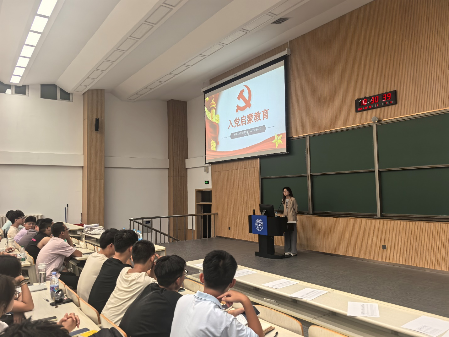 为253名2025级本科新生举办了一场严肃而系统的入党启蒙教育讲座。本次活动由2022级辅导员、本科生党支部书记、本院优秀研究生赵晶主讲,旨在帮助新生加深对党的认识,明确入党要求与程序。