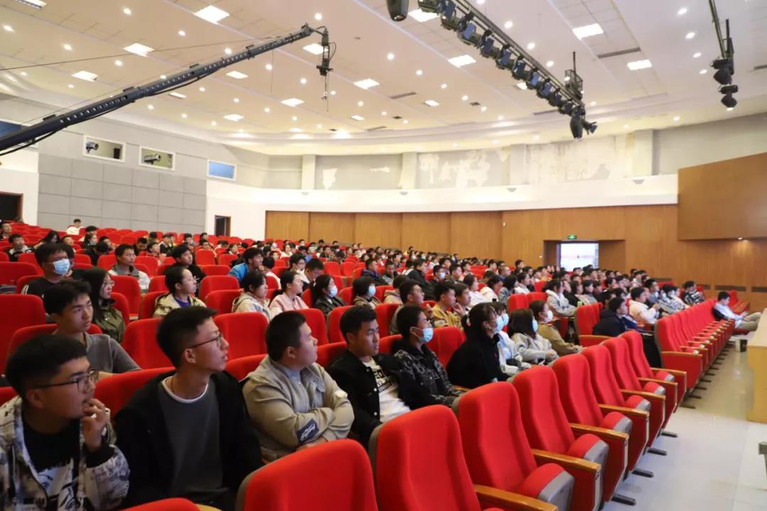 于经信教学楼新闻与传播演播厅举行“仰望星空,脚踏实地”新生第一堂思政课。院党委副书记兼副院长李阳为2021级全体新生授课。