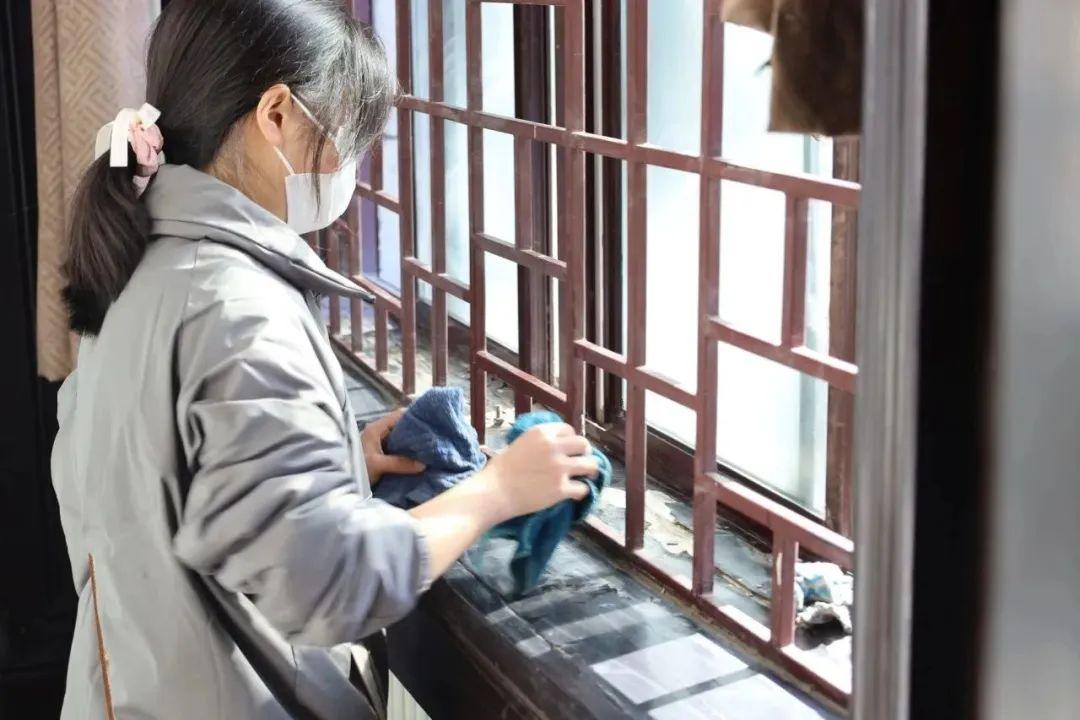 在此之后同学们开始有条不紊的进行劳动工作,他们充分展示出了合作意识与极高的工作效率。在擦拭展示柜和打扫馆内卫生的过程中,同学们耐心十足、一丝不苟,使得来自于亿万年前的藏品得到保护并焕发出更好的展态。与此同时,同学们也了解了地质宫的历史以及馆内工作的重要性、增强了同学们的社会责任感和劳动乐趣、培养了大家的劳动意识、助长了各位的劳动精神,让“劳动最崇高、奋斗正青春”的精神在我们这片流淌着华夏文明源流的土地上生长出更加繁茂的智慧之花。