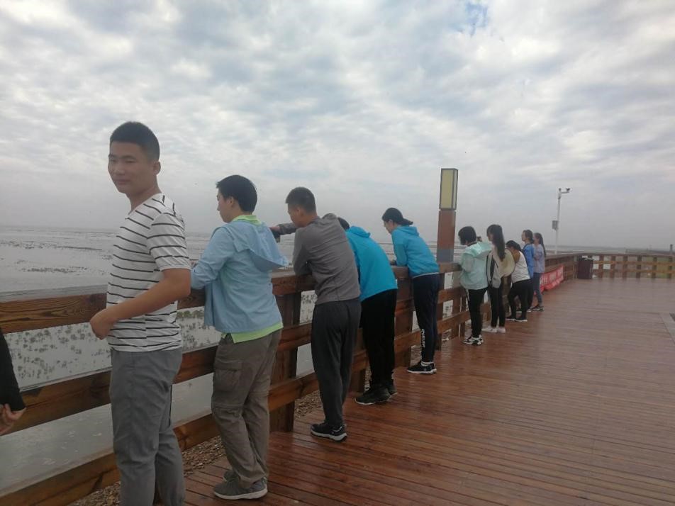 前往老滩的途中,路过红海滩景区,张老师带领同学们下车参观红海滩一带的风景,并且介绍了红海滩、滩涂以及和专业知识有关的土地利用方式等等内容,并给同学们提出思考问题,人类的行为对土地产生了什么影响,人力对土地有何改造方式,人与自然应如何协调发展。同学们课下纷纷对其进行探讨交流。