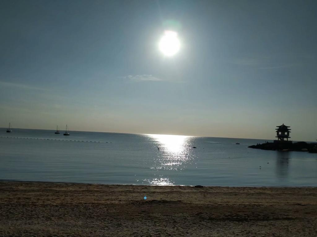 又是一个晴空万里的日子,16届地质班的同学们踏上了去往钓鱼台海滨的路程。此程并不远,师生步行而至。初升的太阳暖人而调皮,把海水照射的如同镜面,耀眼至极。
