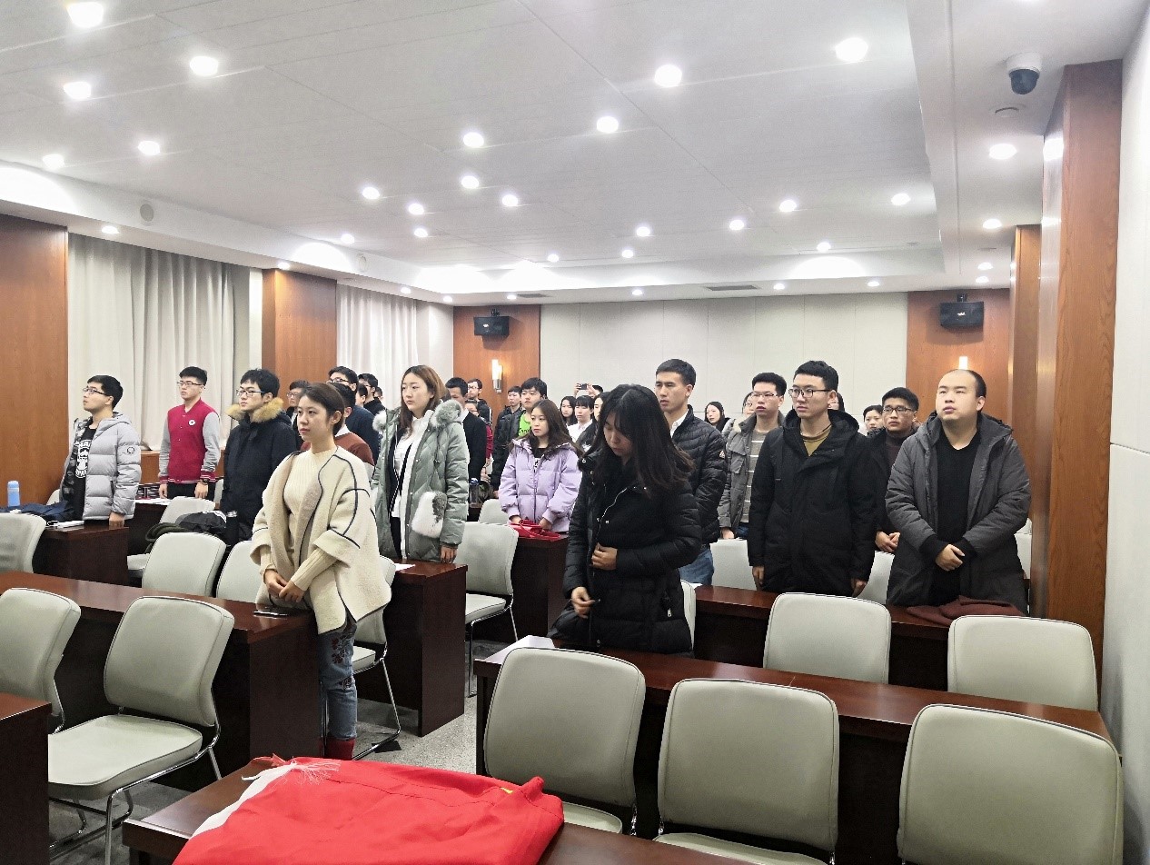 党委书记杨洲、党委办公室主任周小萌老师、辅导员李功宇老师、各年级党支部书记以及本年度新发展的研究生与本科生预备党员参加了本次活动。