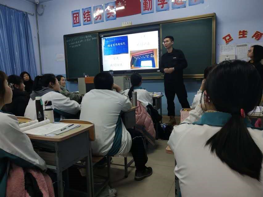 特色的大学生活宣传课件。在团队精心的筹备下,在与大安一中的积极沟通下,团队招生宣传活动在母校高三课堂上顺利开展。