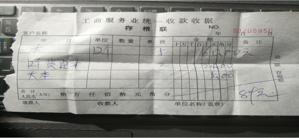 (实践花销凭据:)