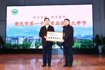 在寿光一中的关注度较高,属于很多学生的意向学校。在“校园大学节”开幕式上,宋宏宇老师向寿光一中魏华中校长授予了优质生源基地牌匾。