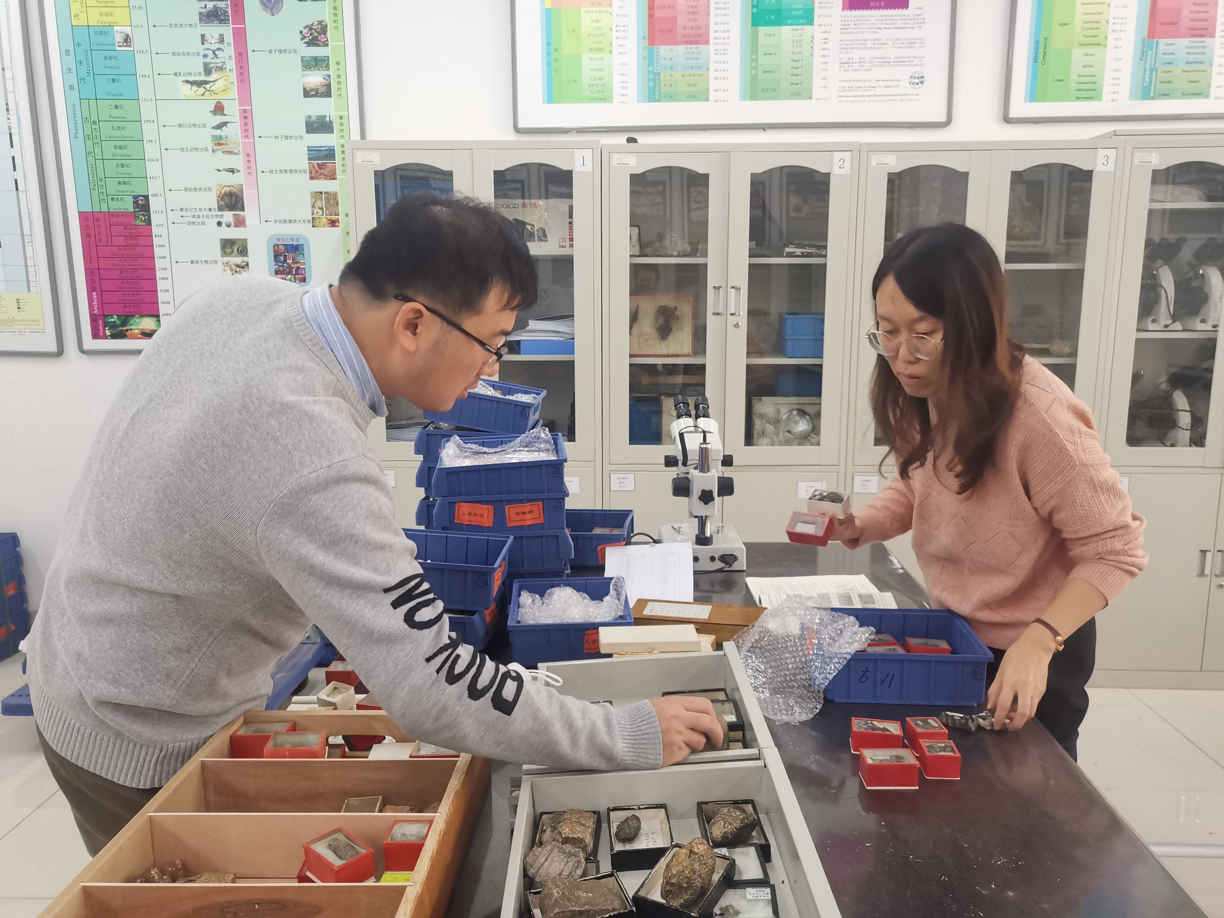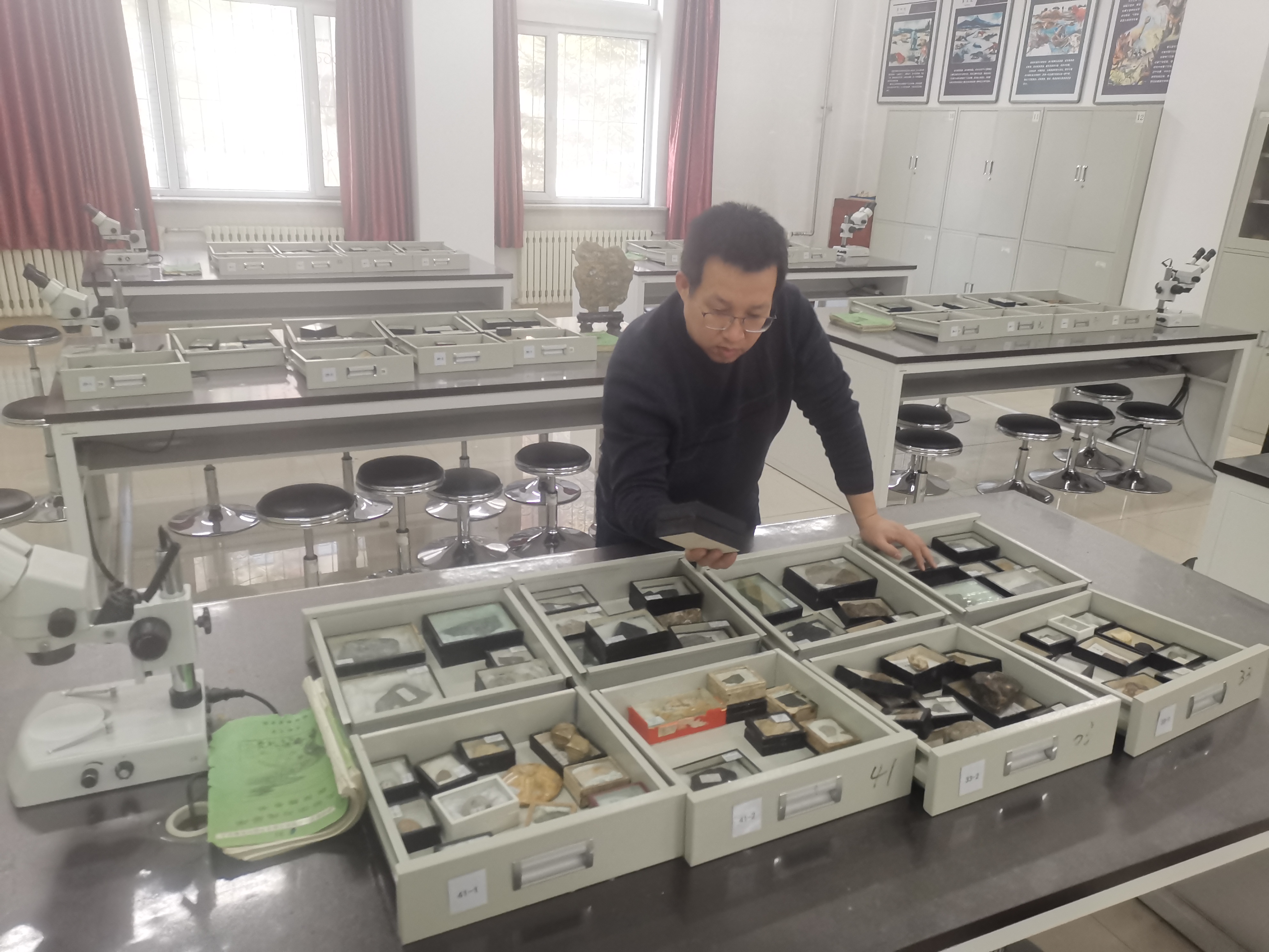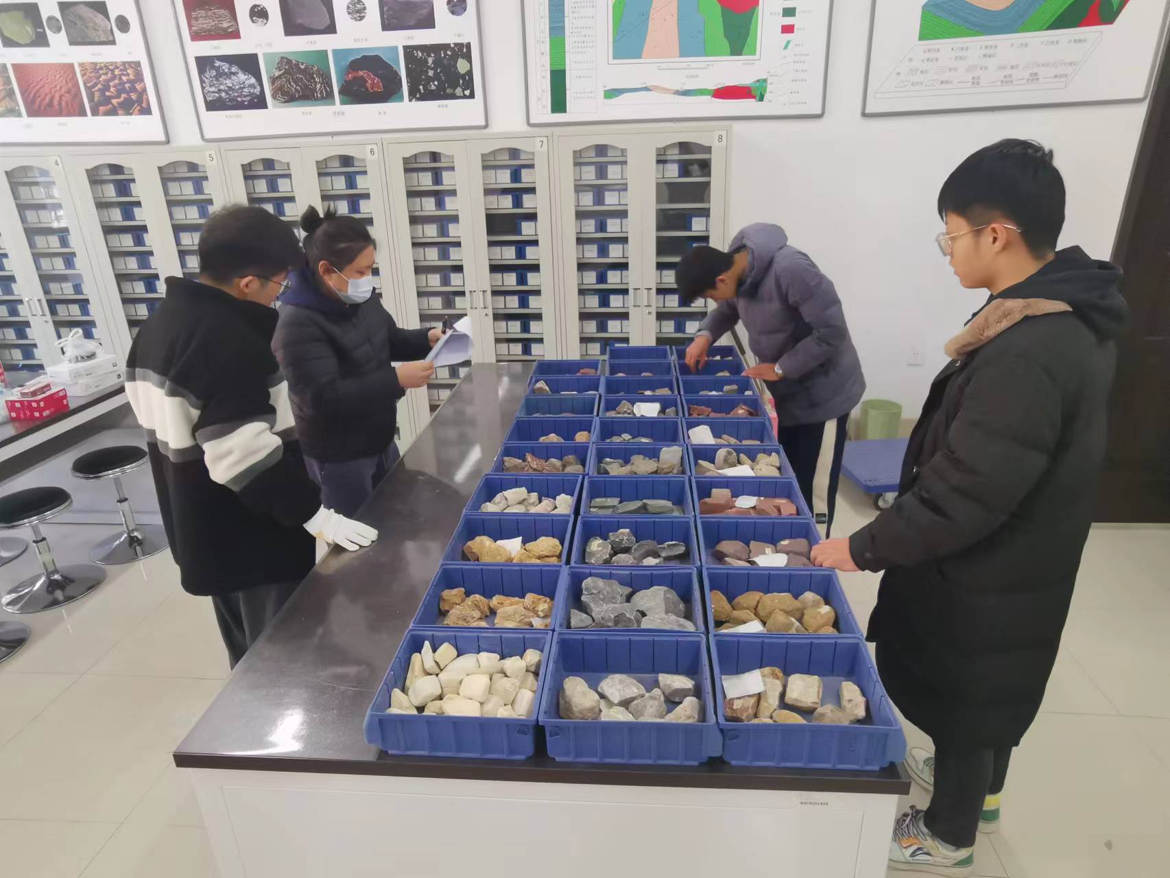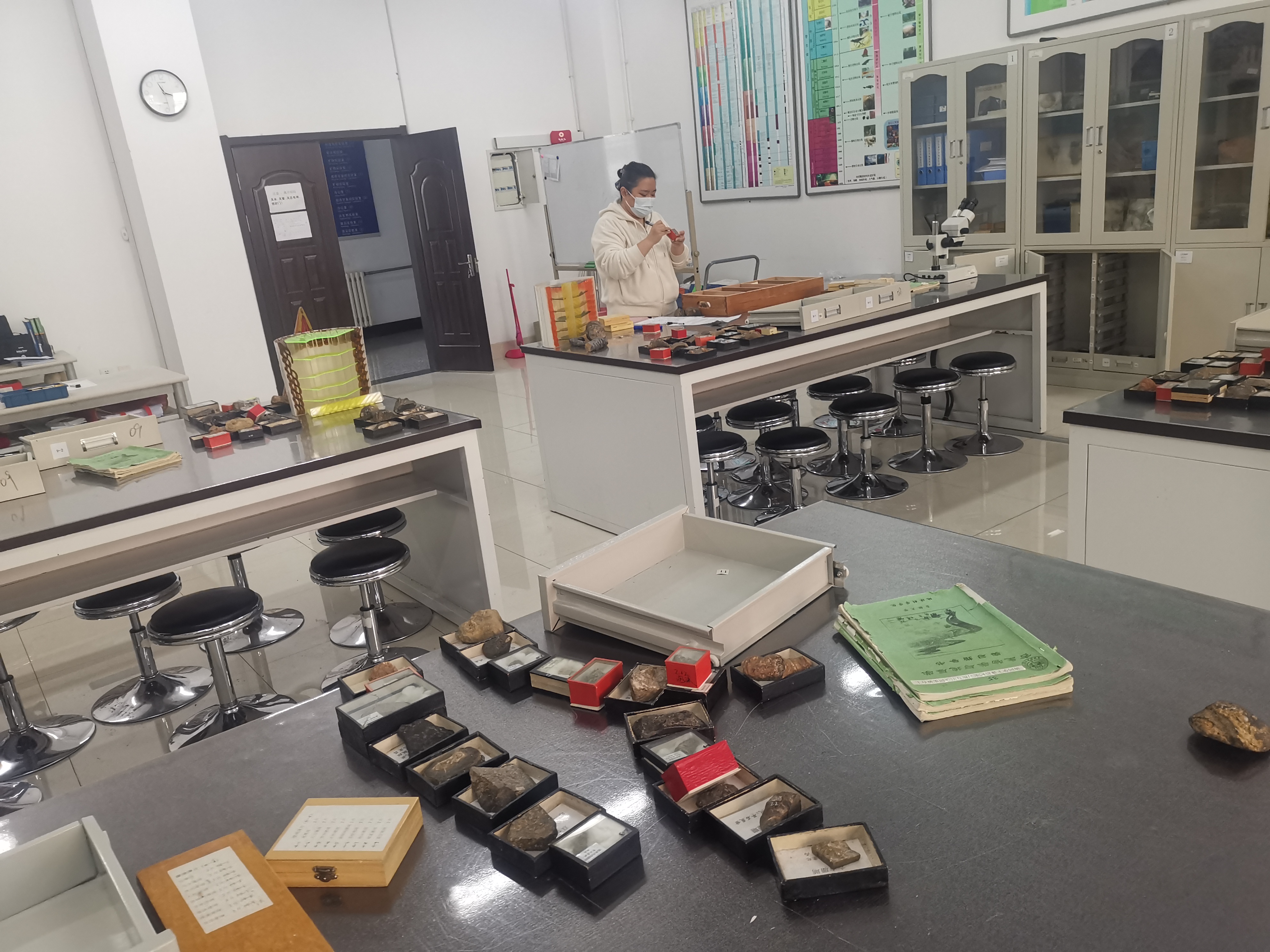 3月16日,中心完成普地、矿物学、古生物学、岩石学标本的整理及教学补充。2021年年末,中心完成应用技术学院教学标本的整理及接收工作,2022年在疫情影响下,实验教师及实验技术人员克服困难,陆续完成普通地质学、矿物学和古生物学标本的鉴定、整理、清理、教学补充工作。近日,完成以往标本的入库整理工作,以及岩石学岩浆岩部分标本的挑选补充工作。