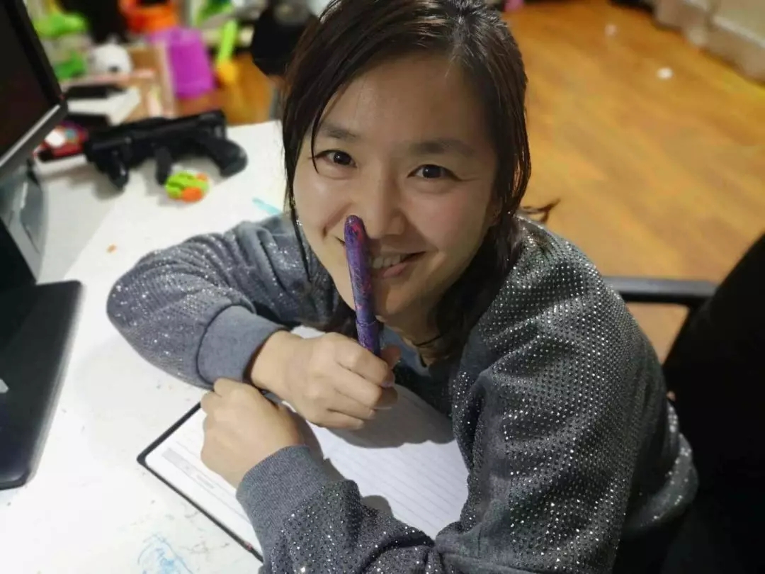 女教师仍不忘为武汉加油,为奋斗在第一前线的工作人员们而加油。