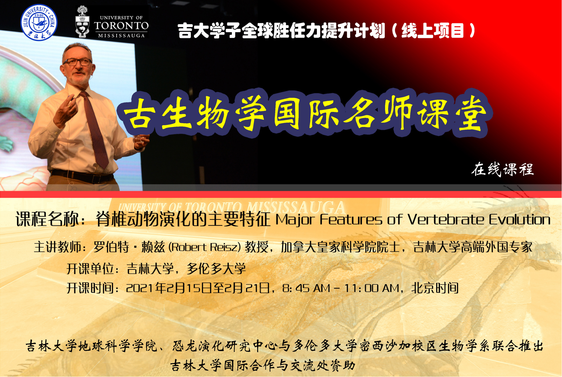 本次《古生物学国际名师课堂》线上课程,邀请了国际著名的古生物学家、加拿大皇家学会院士、美国科学促进会院士、多伦多大学古生物学特聘教授罗伯特·赖兹(Robert Reisz)院士为主讲教师, 日本av中文字幕