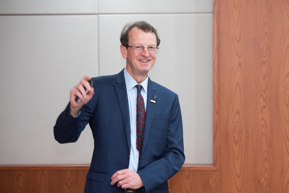 仪式后,Simon C. George教授作了题为《国际大洋发现计划 (IODP)378号——新西兰南部坎贝尔海台发现的早古新世沉积剖面中的碳氢化合物》(Hydrocarbons in a new early Paleocene sedimentary section recovered from the Campbell Plateau, south of New Zealand, by IODP Expedition 378 )的学术报告。