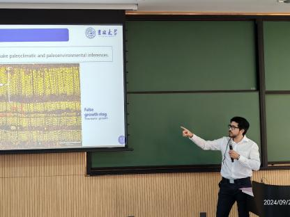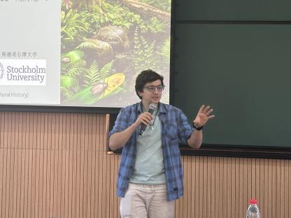 Camille Rossignol副教授以“东赤道盘古大陆石炭纪—二叠纪的古环境”为题,分享了他关于古环境重建的研究,开启了精彩的学术讨论。博士后Artai A. Santos就“华北东部石炭纪—二叠纪时期植物与昆虫的相互作用”作了详尽的讲解,展示了植物和昆虫在古代生态系统中的复杂关系。博士后舒文超讲述了“华南乐平期大羽羊齿类植物的形态差异与习性”,为与会者展现了古代植物多样性的研究进展。